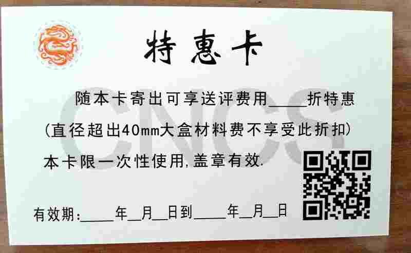 說明:華龍盛世所有優惠卡僅限“標準鑒評”使用